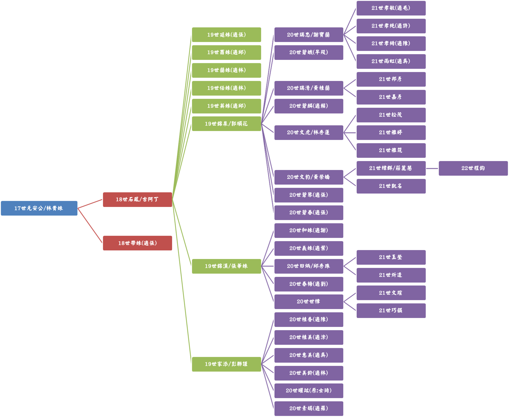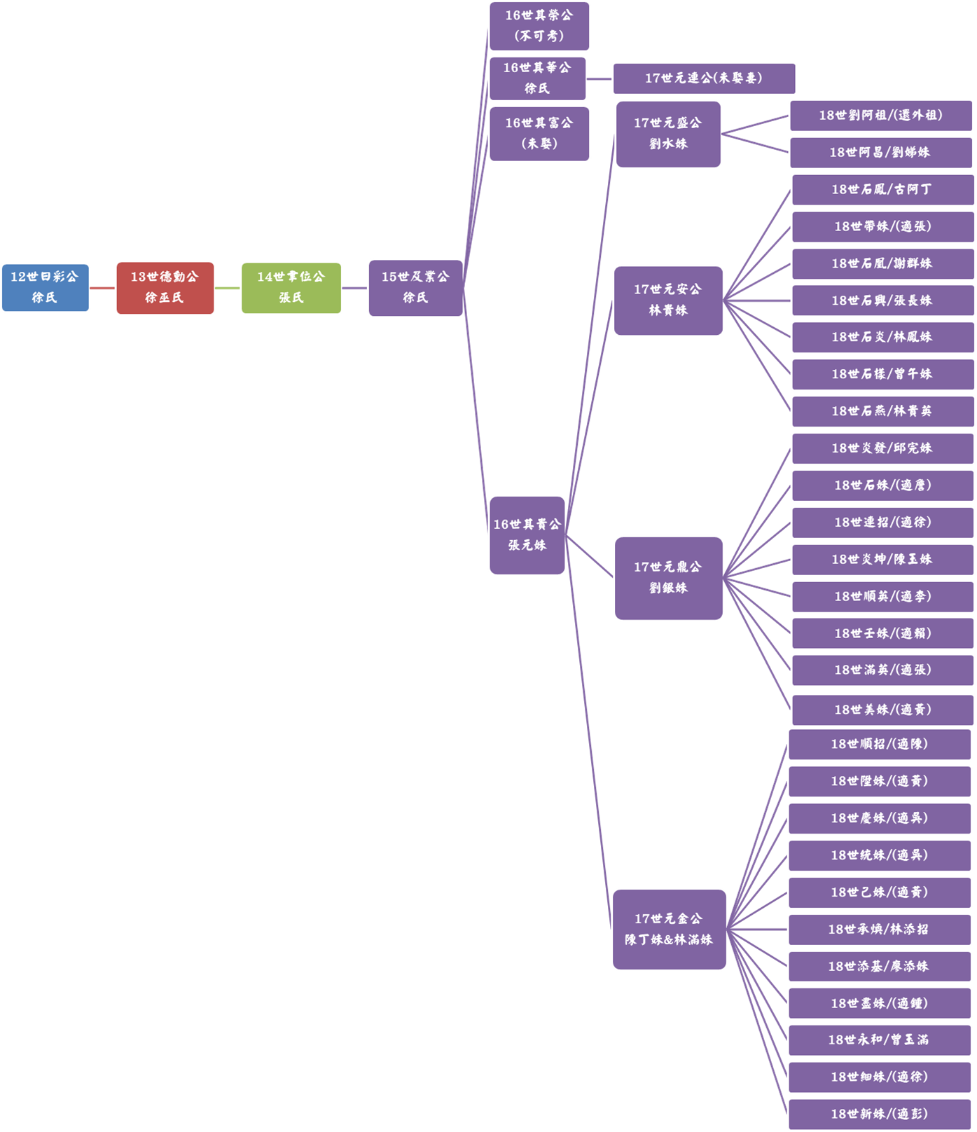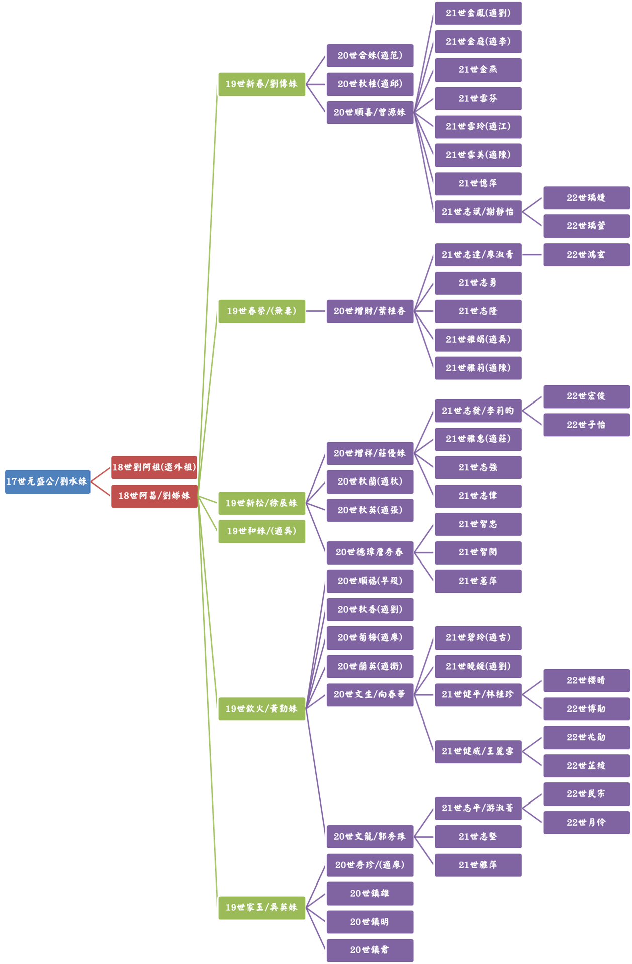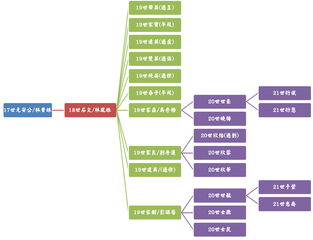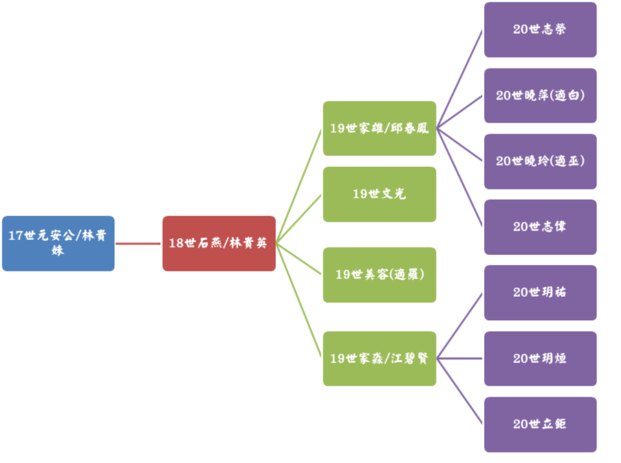 我族原鄉乃廣東省鎮平縣馬安潭白坭湖,古人云:「木有本而水有源」,人亦有然,自始十四世祖朴直「聿位」公渡海來台血脈綿衍迄今已廿二世。奈因五胡亂華與共黨文革之害,兩岸均未有史籍得詳記先祖之名氏,唯察考而得十二世「日彩」公與十三世「德勳」公兩代祖始于廣東省鎮平縣,但遠近世系一脈源流未詳逐異致之,為日後子孫得察所報鴻恩,戮力查考紀錄以上報祖德下慰後人,詳推三思焉爾。