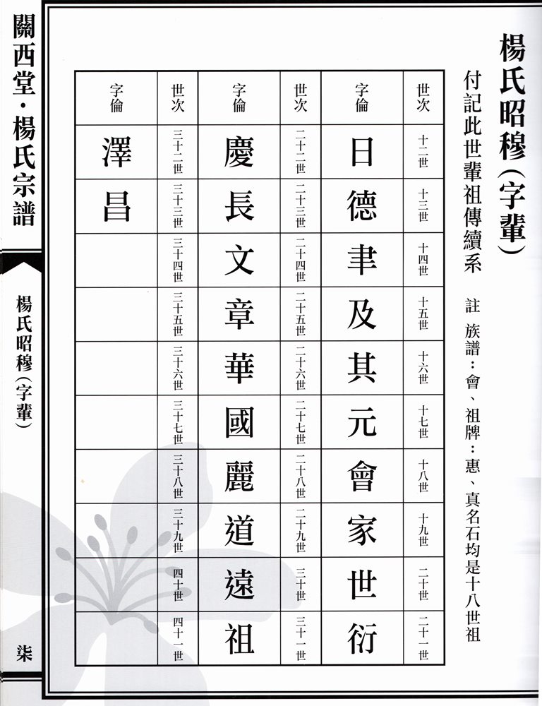 關西堂楊家族譜